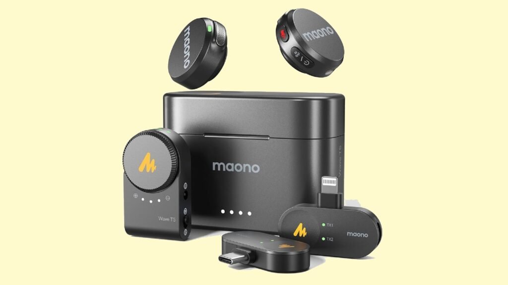 Ogni trasmettitore ha batteria interna con autonomia prolungata (oltre 30 ore usando la custodia di ricarica), ideale per sessioni lunghe di vlog, interviste o streaming senza interruzioni. In sintesi, il Maono T5 Wave rappresenta una soluzione affidabile ed efficace nella fascia media per chi vuole ottenere audio di qualità superiore rispetto ai microfoni integrati nei dispositivi, pur mantenendo un prezzo accessibile e facilità d’uso.